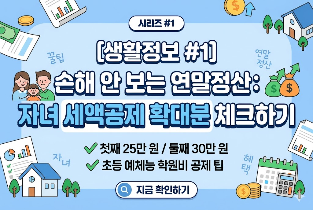 2026년 연말정산은 양육 가정에 매우 우호적인 방향으로 개편되었습니다. "얼마 차이 안 나겠지"라는 생각은 금물입니다. 오늘 정리해 드린 자녀 세액공제 상향분과 초등 학원비 중복 공제 등을 잘 챙기면 수십만 원의 추가 환급이 가능합니다. 특히 새롭게 추가된 항목은 간소화 서비스에서 누락될 수 있으니 미리 증빙 서류를 챙기는 센스를 발휘해 보세요. 여러분의 소중한 월급, 단 1원도 놓치지 않고 돌려받으시길 응원합니다! 다음 편에서는 "지역화폐 200% 활용법"으로 돌아오겠습니다. 🥰