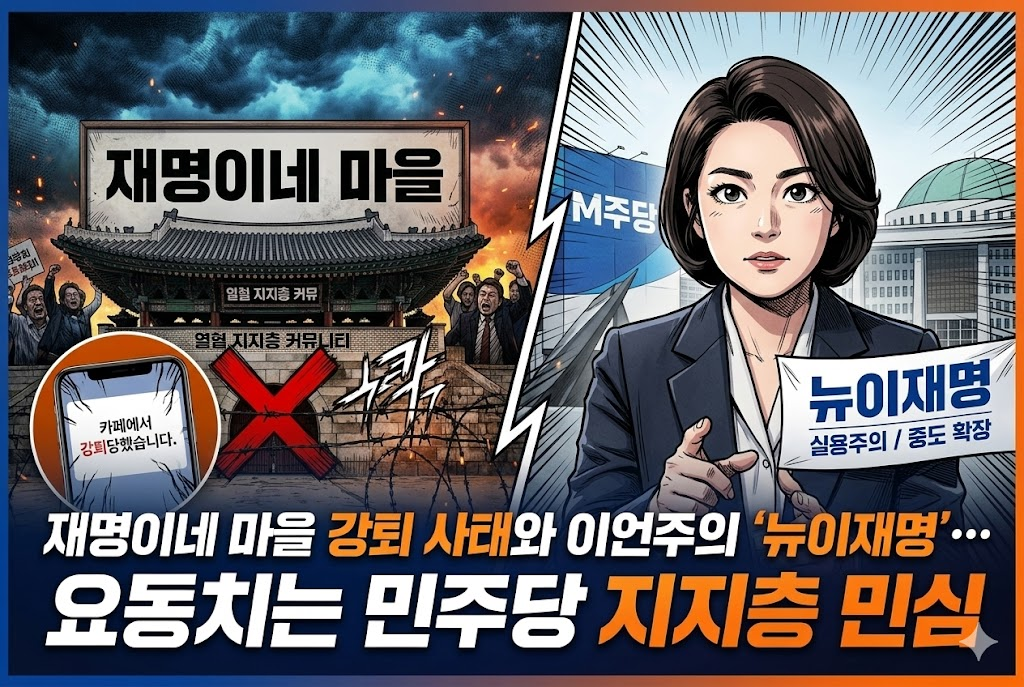 지도부 비토와 커뮤니티 파동: 최근 강성 지지층 커뮤니티인 '재명이네 마을'에서 정청래 의원 등 구주류 지도부를 향한 비판이 쏟아지고, 실제 강퇴 조치까지 이어지는 파동이 일어났습니다.