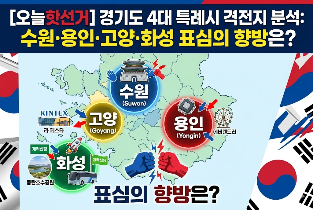 [오늘핫선거] 경기도 4대 특례시 격전지 분석: 수원·용인·고양·화성 표심의 향방은?