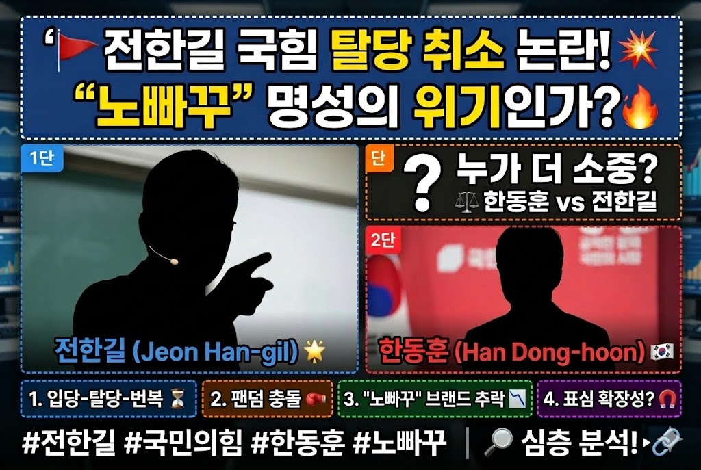 '쓴소리'와 '노빠꾸' 정신의 대명사 전한길 강사가 국민의힘 입당 하루 만에 탈당을 선언했다가 이를 다시 번복하며 거센 비난에 직면했습니다. 지지자들은 그의 일관성 없는 태도에 실망을 표하고 있으며, "한동훈보다 소중하냐"는 회의론까지 등장했습니다. 이번 사태는 단순한 정치 참여를 넘어 스타 강사의 사회적 영향력과 책임에 대한 뜨거운 논쟁을 불러일으키고 있습니다.
