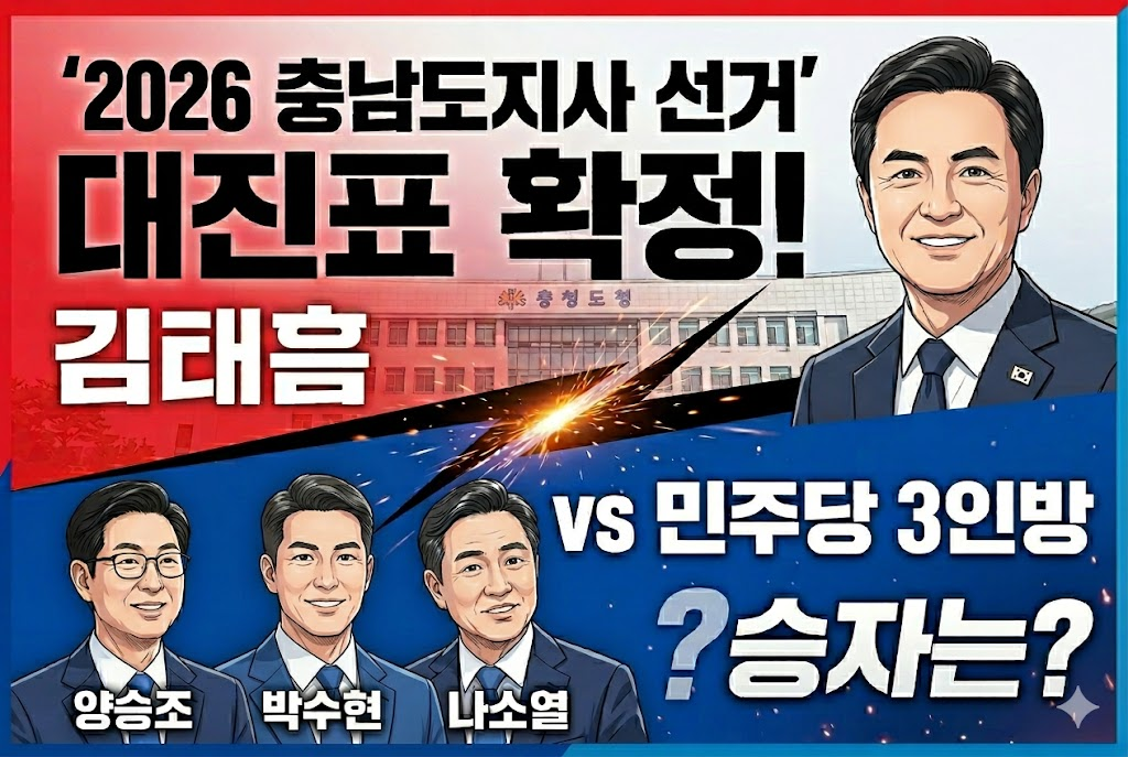 2026 충남도지사 선거 대진표 확정! 김태흠 vs 민주당 3인방 승자는?